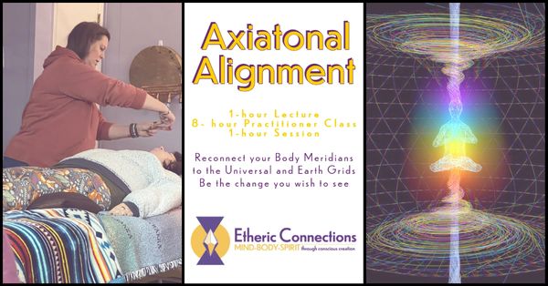 Axiatonal Alignment is a hands-on healing session which reconnects your physical and etheric energy grid lines to the open-ended energy grid lines of the Universe and of the Earth.